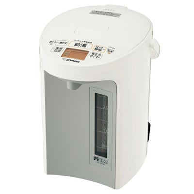 ■電気で沸かして 「まほうびん保温」電気とまほうびん構造を組み合わせてかしこく保温することで、消費電力量を抑えます。 ■プラグをはずして、どこに持っていっても、かるく注げる「コードレス電動給湯」しかも液晶に湯温表示。(別売単3アルカリ乾電池2本使用)」プラグをはずしても乾電池のチカラで、電動給湯できます。単3アルカリ乾電池2本でマグカップ4杯(約800mL)を1日使って約1年間OK!(電池別売)電池の消耗を防ぐため、プラグをはずしてから約5時間後に液晶表示が消え、お湯が注げなくなります。プラグをはずしたとき、液晶画面にコードレス電動給湯用の乾電池残量が表示され、乾電池交換時期の目安をお知らせします。 ■905W「スピード沸とう」お湯が速く沸くから、時短にぴったり。忙しい朝や料理の下ごしらえにも便利です。■大きな文字と分かりやすい操作パネル操作パネルの文字が大きく、視認性が高いボタン配置と配色で使いやすさに配慮しています。■大型オレンジくっきり液晶■湯沸かし時間、消費電力量、蒸気を抑える 「沸とうセーブ」(選択式)90℃・80℃・70℃保温設定時に選択可能沸とうさせずに設定した温度まで沸かして保温するから、湯沸かし時間、消費電力量、蒸気の発生を抑えられます。(浄水器などの使用で、カルキとばしの必要がない方におすすめの機能です。)■2時間操作しないと保温ヒーターを自動オフ「省エネモード」(選択式)98℃・90℃・80℃保温設定時に選択可能2時間操作がないときは自動で保温ヒーターへの通電を切り、消費電力量を削減します。70℃まで湯温が下がると70℃保温を開始します。■ゆっくり少量ずつ注げる 「ゆっくりカフェドリップ給湯」少量でゆっくり注げるのでお湯が飛び散りにくく、じっくり蒸らせます。■用途に合わせて使い分けられる「5段階保温設定」98℃・90℃・80℃・70℃・まほうびん■使わない時はタイマーで節約「5段階節約タイマー」6・7・8・9・10時間■お湯の残量がとっても見やすいワイドウインドウ&「ピタッと赤玉水量計」水量計の背景色をダーク系にし、水のある部分とない部分をハッキリ分かるようにしました。■必要量を湯沸かしするのに便利 「内容器水量目盛」■容量:3.0L■消費:湯沸かし時(W) 905■電力:年間消費電力量 273kWh/年 / 一日あたりの消費電力量 0.75kWh/日■お湯を沸かす時間:約24分■沸とう後希望の湯温になるまでの時間 100℃→70℃(室温23℃,1L):約2時間30分 ■電源コード(m):1.0■寸法:幅×奥行×高さ(cm):22×29.5×30■質量(kg):3.0