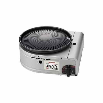 煙の発生を少なく抑え、室内で手軽に焼肉が楽しめる!本体上部にフッ素加工をプラス!お手入れがより簡単になりました○プレートの温度を高温化させない構造で脂の煙化を抑えるバーナーと焼き面の間に適度に熱がこもる構造にして焼き面を約210~250℃にコントロール。直火なので焼き面温度の立ち上がりが早く、お肉がこんがり美味しく焼けます。○脂を炎に落とさない構造で煙を出さない脂を水皿に確実に落とす3つの仕組み1.表面の溝をスリットとつなげ、脂の通り道をつくる仕組み2.裏面4か所の突起により隙間をつくり脂を効率的に落とす仕組み3.裏面の約7mmの壁で脂をバーナーに掛けない仕組み○炎のチカラでお肉が美味しく焼けるカセットガス式なので焼き面温度の立ち上がりが早く、お肉がこんがり美味しく焼けます。【仕様】○本体サイズ:303(幅)×278(奥行)×149(高さ)mm○プレートサイズ(直径):233mm○重量:約2.0kg○カラー:シルバー&ブラック○材質 ・本体上部、容器カバー:鋼板(フッ素樹脂加工)・本体:鋼板(粉体塗装)・プレート:アルミダイカスト(フッ素樹脂加工)・バーナー:耐熱アルミダイカスト・点火せんつまみ:ABS樹脂○ガス消費量:約76g/h ※1○連続燃焼時間:約217分 ※2○点火方式:圧電点火方式○安全装置:圧力感知安全装置、他○容器着脱方式:マグネット方式○使用ガス:イワタニカセットガス○付属品:取っ手※1 気温20~25℃のとき、30分間のガス消費量を1時間に換算したもの※2 気温20~25℃のとき、強火連続燃焼にてカセットガス1本を使い切るまでの実測値