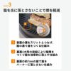 ■おうち焼肉をより快適に。“煙の発生”に加え、気になる“油はね”も軽減!■新構造の「ガード付き水皿」で、焼肉の油はねを軽減!■直径約23cmのプレートを囲む、高さ約4.7cmのガードを搭載。プレートの下にある水皿のフチを高くし、ガードの役割をもたせることで、本体やテーブルへの油はねや飛び散りを軽減します。より快適に焼肉をお楽しみいただけるようになりました。■プレートの温度を高温化させないことで脂の煙化を防ぐ。バーナーとプレートの間に適度に熱がこもる構造でプレート表面を約210~250℃にコントロール。直火なのでプレート表面温度の立ち上がりが早く、お肉がこんがり美味しく焼けます。■脂を炎に落とさないことで煙を軽減■油はねのガードがついても、従来品と同じ高さ。バーナーの形状と配置を工夫することで、「煙の発生を抑える」という従来機能を維持しながら、本体をスリム化しました。そのため、油はねガードが付いていても、食卓で圧迫感なくお使いいただけます。■最大発熱量 :1.0kW (900kcal/h)■本体サイズ(幅×奥行×高さ):319×279×149mm■プレートサイズ(直径):233mm■商品重量:約1.9kg■材質:[本体]鋼板(粉体塗装)、[プレート]アルミダイカスト(フッ素樹脂加工)、[水皿]鋼板(耐熱塗装)、[バーナー]耐熱アルミダイカスト、[点火つまみ]ABS樹脂■ガス消費量:約76g/h ※1■連続燃焼時間:約217分 ※2■点火方式:圧電点火方式■安全装置:圧力感知安全装置、容器装着安全装置■容器受口加圧式機構■容器着脱方式:マグネット方式■生産国:日本※1 気温20~25℃のとき、30分間のガス消費量を1時間に換算したもの※2 気温20~25℃のとき、強火連続燃焼にてカセットボンベ1本を使い切るまでの実測値※当商品をテント内、車内では絶対に使用しないでください