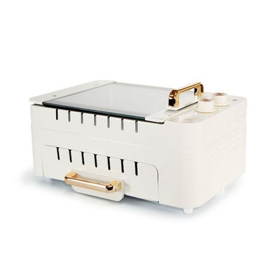 ◎調理家電の革命!!串が自動で回転する機能付き!■最多で14本の串焼きが一気に焼けて、自動回転なので焼き加減を見ながら手で回転する手間も不要!■プレートでは焼肉、ステーキ、すき焼き、お子さまが大好きなパンケーキも焼けます!■串焼きでは焼鳥、野菜焼き、フランクフルト、プチBBQも楽しめます。■オーブンではトースト、ピザ、餅、クッキーなどのお菓子作りもできます。■上段のプレートで焼肉などを焼きながら、下段の串焼きで焼鳥を同時に焼くことも可能。■ガラス蓋は簡単に取り外しができるので、お手入れし易くいつでも清潔に。■商品名:多機能マルチグリル器■メーカー:iRoom■外形寸法:約380×250×188mm■本体重量:約6.0kg■電源コード長さ:約1.0m■定格消費電力:1,000W■電源:AC100V(50/60Hz共用)■準拠規格:プレート / GB4806.9-2016■焼き網 / GB4806.9-2016■フッ素コート / GB4806.10-2016 ※製品の使用は予告なく変更される場合がございます■セット内容:本体、グリルパン、プレート、焼き網、串焼き専用スティック*14本、ハケ、取扱説明書■メーカー保証1年付き