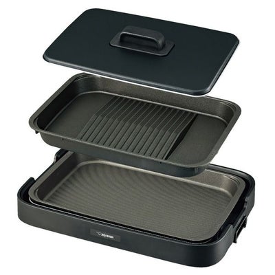 ■「深型プレート」「傾斜溝つき焼肉プレート」の2枚プレート■「焼く」から「煮る」まで料理のレパートリーが広がる深さ3.5cm「深型プレート」深さ3.5cmだからたっぷり使え、定番料理はもちろんパエリアなどのこぼれやすい料理、パスタやすき焼きといった汁気の多い料理も楽しめます。■プレートの溝が傾斜していて落ちた脂が流れやすい「傾斜溝つき焼肉プレート」6°の傾斜角度で、油切れ約50%アップ※1、油の飛び散りを約50%カット※2。溝の底は落ちた脂がまとまりやすい(逆三角形の)形状で、しかも傾斜しているので流れやすい構造です。※1 加熱したプレートの中央部で牛脂を溶かし側面に流れつく牛脂の重量比を算出。メーカー自社基準による。EA-B型…平面スペースつき遠赤溝つき焼肉プレート、EA-K型…傾斜溝つき焼肉プレートを使用。EA-B型は1.16g、EA-K型は1.77g (条件)牛脂1.9g使用。プレートの汚れ状態やプレート温度などにより流れつく割合は異なります。※2 肉を焼いたときの油飛散数を比較。メーカー自社基準による深型プレート及び焼肉プレートを使用し、油の飛散数を比較することにより算出。(油の飛散数)深型プレート : 約7,150 焼肉プレート : 約2,850(条件)プレート温度250℃、調理時間10分、牛バラ肉100g使用。肉の種類によって飛散数は異なります。■丈夫で長持ち 耐久性が高い「遠赤トリプルチタンセラミックコートの深型プレート」丈夫で長持ち、3層構造の傷つきにくい「トリプルチタンセラミックコート」を使用しています。遠赤深型プレートの表面は、浅い凹凸のダイヤカットディンプル仕上げなので油なじみが良くこげつきにくく、調理もラクラク。また金属ヘラ※3も使えます。■※3 先端やコーナー部が鋭利な金属ヘラは使わないでください。■かる~くセットできる「カチッと温度調節プラグ」■プレートのふちに直接手が触れにくい「本体ガード」本体ガードは分解できて丸洗いできるので、気になる油汚れもきれいに落とせます。■「2.5mロングコード」で使いやすい■プレートをセットしなければ通電しない安全機構■最高温度(ふたなし)250℃■消費電力(W):1300■外形寸法 幅×奥行×高さ(約cm):48×33×14(2枚重ね時高さ16)■プレート内寸 幅×奥行×深さ(約cm):深型プレート:40.5×27×3.5、焼肉プレート:40.5×27×2■本体質量(約kg):5.5