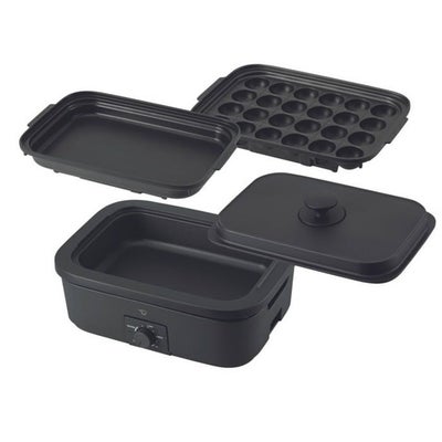 【商品特長】○キッチンや卓上に出しっぱなしで使えるコンパクトデザインホームパーティーなどの特別な日だけではなく、「日常的に使いこなす」というコンセプトのもと設計されたプレート。キッチンや食卓でも邪魔にならないサイズ感なので、使用後も出しっぱなしでOK。朝、昼、晩のシーンを問わず、毎日の料理に大活躍します。また、卓上調理をして、プレートから直接料理を取り分ければ、使う食器の数も減り、後片付けの負担も軽減できます。○素材本来のうまみを引き出す無水調理※1 対応!程よく重いアルミダイキャストのふたがウォーターシールを形成し、プレート内の気密性を高めます。また、ふた裏面のリブ構造が食材から出た水分をプレート全体にしずくとして効率よく還元。少ない水分で調理ができるので、食材本来のうまみと栄養がぎゅっと凝縮されたおいしい料理が楽しめます。※1 無水調理とは水の代わりに食材が持っている水分や油分を活用した調理法。水に溶けやすいビタミンやミネラルを損ないにくく、栄養素を丸ごといただけます。水やだし汁を使っていないものを指し、必要最低限の調味料は使用します。○お鍋や煮込み料理が楽しめる!深さ5.5cmの深なべコンパクトなサイズ感ながらも、たっぷり作れる3.1Lの大容量。生活シーンに合わせて容量を調整できます。また、なべの表面はフッ素コートを施してあるので、お手入れもラクラクです。○焼き物や簡単な煮込み料理が楽しめる!平面プレート丈夫で長持ち、3層構造の傷つきにくい「遠赤トリプルチタンセラミックコート」を採用。また、プレート表面は油なじみの良い、凹凸のダイヤカットディンプル仕上げなので、こげつきにくく、調理もラクラク。金属ヘラ※2も使えます。※2先端やコーナー部が鋭利な金属ヘラは使わないでください。○直径40mmのたこ焼きが24個焼ける!区切り線つきたこ焼きプレート外はカリッと、中はトロリとしたたこ焼きが焼き上がります。また、区切り線つきなので、穴からあふれた材料も丸めて作りやすい。○焼きムラを抑え、プレートの端までしっかり熱を伝える波型3往復ヒータープレートの端までしっかり熱を伝え、焼きムラを抑える波型3往復ヒーター。プレートの角のたこ焼きもしっかり焼き上げます。○食材を効率よく加熱するマイコン搭載マイコン搭載でセンサー感度が高いため、食材の温度を素早く検知して効率よく加熱します。食事の途中でだしや鍋つゆを追加する時にも、あたため直しが早く便利です。○予熱が完了すると音が鳴る予熱お知らせブザーマイコンを搭載しているため、予熱が完了するとブザーでお知らせしてくれます。※3※3予熱が完了する前に調理物や水・だし汁を入れるとブザーが鳴らないことがあります○本体ガード、カンタン丸洗い!本体ガードは取りはずせるので、気になる油汚れも丸洗いできます。○プレートのふちに直接手が触れにくい≫「本体ガード」※3本体ガードがプレート面より高く、熱いプレートのふちに手が触れにくい安心設計です。※3 平面プレート、たこ焼きプレート使用時のみ対応○引っかかるとすぐにはずれるマグネットプラグ調理中に万が一引っかかっても簡単にはずれる安全設計。○プレートがきちんとセットされていないと通電しない安全機構プレートがきちんとセットされていないと、ブザーでお知らせします。○切り忘れ自動OFF機能操作をしていない状態で約2時間経つとブザーでお知らせし、自動で電源が切れるため、切り忘れを防ぎます。○長くて便利な2.5mロングコード十分な長さがあるので、キッチンや食卓でも、『届かない…!』といったストレスなく使っていただけます。○WARM、LOW、MED、HIに設定できる火力調節ダイヤル【仕様】○消費電力:1100W±50W○電源コード(m):2.5