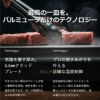 ◎ライブキッチンのおいしさと楽しさを実現するホットプレート 革新的なホットプレートの登場です。BALMUDA The Plate Proは、6.6mm厚の3層クラッドプレートと正確な温度制御により、さまざまな料理をプロの味わいに焼きあげます。 絶妙な焼き加減のステーキや、本場のお好み焼き、憧れのクレープまで。 バルミューダだけのライブキッチン体験をお届けします。■常識を覆す厚み。6.6mmクラッドプレート 今までにない厚みのプレートが高い蓄熱性を実現。食材を置いても温度が低下せず、均一で理想的な火入れが可能です。■プロの焼きあがりを叶える正確な温度制御 設定温度を正確にコントロールし、おいしく焼ける温度を維持。難しいステーキの焼き加減も、望み通りに仕上がります。■目の前で広がる調理エンターテインメント ダイニングにセットしたら、ライブキッチン体験の始まりです。香ばしい香りとともに、目の前で切り分け、できたてをサーブ。五感を刺激する楽しさです。≪BALMUDA The Plate Proだからできる数々のおいしさ≫○サーロイン・ステーキ まず初めにお試しいただきたいレシピです。ステーキハウスのような理想的な焼き加減がご自宅でかないます。○ライブ・チーズバーガー プレート上でビーフパティを豪快にスマッシュ。軽く焼いたバンズ、とろけるチーズ…すべてが好相性のとっておきのおいしさをご堪能ください。○大将のお好み焼き 一度はチャレンジしたい、広島風お好み焼き。あつあつできたてをコテで切り分け、お皿へ。お店さながらのライブ感をお楽しみいただけます。○カリッカリ餃子 みんなが喜ぶ餃子を、この上なくカリッカリに仕上げます。手作りはもちろん、冷凍やチルドの餃子を使ってもおいしくできます。○憧れのクレープ クレープ屋さんのようにふんわり軽いクレープ生地。薄くなめらかな仕上がりは、正確な温度制御だからこそ。とっておきのデザートをどうぞ。■製品名:BALMUDA The Plate Pro■製品寸法:幅 573mm × 奥行 334mm × 高さ 88mm(クラッドプレート含む)■プレート寸法:幅 380mm × 奥行 245mm × 高さ 25mm■製品重量:約5.2kg(クラッドプレート含む)■電源:AC100V 50Hz/60Hz■電源コード長さ:約3.0m■消費電力:1120W■温度設定:160℃ / 180℃ / 200℃ / 220℃(4段階)■オートオフ機能:あり■カラー:ブラック(型番 : K10A-BK、JANコード : 4560330111976)■パッケージ内容:本体、クラッドプレート、油受けトレー、ヘラ、取扱説明書(保証書付)■保証期間:お買い上げ日から1年間※本製品は日本国内専用です。海外での使用は保証および修理受付の対象外となりますのでご注意ください。