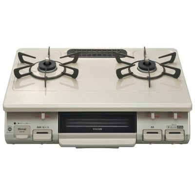 ワイドごとく:左右方向のツメが長いデザインで、調理時の鍋の安定性が良く、お手入れ後など装着時のごとくの向きの視認性を向上しました。単三形乾電池電源:電源は入手しやすい単3型乾電池にしました。ワンピーストッププレート:スッキリとしたフラットなホーロートッププレートの採用によりお手入れがとても簡単です。しる受けがない構造なので、ごとくを外せばフラットなトッププレートとなり、お手入れもサッとひと拭きで簡単です。また、コンパクトなグリル排気口カバーはトッププレートとフラットですっきりしています。フロントデザイン:前面パネルのフロントデザインは操作ボタンが大きく良好な操作性です。また、ON/OFFピクチャーサインを搭載することで、使用状態が一目で分かります。キャップレスバーナーヘッド:ホーロー製のバーナーキャップがない、すっきりとした外観で、お手入れが簡単です。スムーズグリルLight:グリル皿の出し入れがスムーズです。グリル扉にはやけど防止の構造を採用。またグリル扉がワンタッチ着脱式でお手入れも簡単です。コンロお知らせブザー:コンロ使用中は30分毎にブザーが鳴ってお知らせし、長時間使用時の注意を喚起します。グリルお知らせブザー:グリル使用中は5分毎にブザーが鳴り、使用中であることをお知らせすると同時に調理時間の目安としても利用できて便利です。調理油過熱防止装置:揚げもの調理時などに危険温度になる前に、自動消火します。(強火力・標準バーナー)立消え安全装置:煮こぼれや風などで火が消えると、自動でガスを止めます。高温自動温度調節機能:高温調理時、強火と弱火を繰り返し調理中の途中消火を防止します。(強火力・標準バーナー)焦げつき消火機能:鍋底の焦げつきが始まり、鍋を傷める前に自動消火します。(強火力・標準バーナー)コンロ消し忘れ消火機能:強火力・標準バーナーとも約2時間で自動消火します。グリル消し忘れ消火機能:グリルを連続で約20分間使用すると自動消火する消し忘れ消火機能付ですので消し忘れの心配がありません。ラク点火:点火スイッチを1回押せば点火するまで自動的に連続スパークを行う「ラク点火」です。中火点火機能:中火で点火する機構を採用しています。(強火力バーナー)点火ロック:不意な点火を防止するために操作ボタンをロックさせる機構です。電池交換サイン:乾電池の交換時期をランプの点灯・点滅でお知らせします。コンロ・グリル操作ボタン戻し忘れお知らせ機能:安全機能により自動消火したとき、操作ボタンを戻し忘れると、1 分毎にブザーが鳴ってお知らせします。■サイズ:幅596×高218×奥452mm(前脚からゴム管口まで358mm) 重量:8kg■強火力:左■適合するガスの種類:都市ガス12A/13A■接続ガス管:9.5mmφガス用ゴム管(ガスホースは別売り)※ご使用になるガス種と合わない場合、不完全燃焼(赤火部分が多い)や着火しない、異常燃焼(煤(すす)の発生や強火にしても火力が極端に弱いなど)を引き起こす可能性があります。■グリル:片面焼きグリル(グリル皿に水不要)■付属品:単三乾電池2本、取扱説明書(保証書付き)