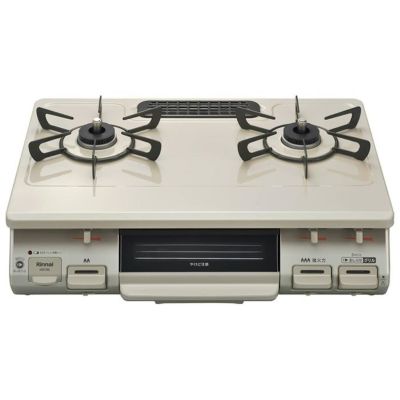 ワイドごとく:左右方向のツメが長いデザインで、調理時の鍋の安定性が良く、お手入れ後など装着時のごとくの向きの視認性を向上しました。単三形乾電池電源:電源は入手しやすい単3型乾電池にしました。ワンピーストッププレート:スッキリとしたフラットなホーロートッププレートの採用によりお手入れがとても簡単です。しる受けがない構造なので、ごとくを外せばフラットなトッププレートとなり、お手入れもサッとひと拭きで簡単です。また、コンパクトなグリル排気口カバーはトッププレートとフラットですっきりしています。フロントデザイン:前面パネルのフロントデザインは操作ボタンが大きく良好な操作性です。また、ON/OFFピクチャーサインを搭載することで、使用状態が一目で分かります。キャップレスバーナーヘッド:ホーロー製のバーナーキャップがない、すっきりとした外観で、お手入れが簡単です。スムーズグリルLight:グリル皿の出し入れがスムーズです。グリル扉にはやけど防止の構造を採用。またグリル扉がワンタッチ着脱式でお手入れも簡単です。コンロお知らせブザー:コンロ使用中は30分毎にブザーが鳴ってお知らせし、長時間使用時の注意を喚起します。グリルお知らせブザー:グリル使用中は5分毎にブザーが鳴り、使用中であることをお知らせすると同時に調理時間の目安としても利用できて便利です。調理油過熱防止装置:揚げもの調理時などに危険温度になる前に、自動消火します。(強火力・標準バーナー)立消え安全装置:煮こぼれや風などで火が消えると、自動でガスを止めます。高温自動温度調節機能:高温調理時、強火と弱火を繰り返し調理中の途中消火を防止します。(強火力・標準バーナー)焦げつき消火機能:鍋底の焦げつきが始まり、鍋を傷める前に自動消火します。(強火力・標準バーナー)コンロ消し忘れ消火機能:強火力・標準バーナーとも約2時間で自動消火します。グリル消し忘れ消火機能:グリルを連続で約20分間使用すると自動消火する消し忘れ消火機能付ですので消し忘れの心配がありません。ラク点火:点火スイッチを1回押せば点火するまで自動的に連続スパークを行う「ラク点火」です。中火点火機能:中火で点火する機構を採用しています。(強火力バーナー)点火ロック:不意な点火を防止するために操作ボタンをロックさせる機構です。電池交換サイン:乾電池の交換時期をランプの点灯・点滅でお知らせします。コンロ・グリル操作ボタン戻し忘れお知らせ機能:安全機能により自動消火したとき、操作ボタンを戻し忘れると、1 分毎にブザーが鳴ってお知らせします。■サイズ:幅596×高218×奥452mm(前脚からゴム管口まで358mm) 重量:8kg■強火力:右■適合するガスの種類:都市ガス12A/13A 接続ガス管:9.5mmφガス用ゴム管(ガスホースは別売り)※ご使用になるガス種と合わない場合、不完全燃焼(赤火部分が多い)や着火しない、異常燃焼(煤(すす)の発生や強火にしても火力が極端に弱いなど)を引き起こす可能性があります。■グリル:片面焼きグリル(グリル皿に水不要)■付属品:単三乾電池2本、取扱説明書(保証書付き)