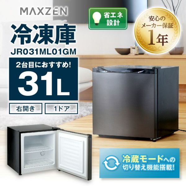 他の画像を見る 送料無料 マクスゼン 31L 1ドア 右開き 冷凍庫 冷蔵モード搭載 JR031ML01GM ガンメタリック 当店特別価格 ¥ 14,480 税込 送料無料 カートに入れる お気に入りに登録する