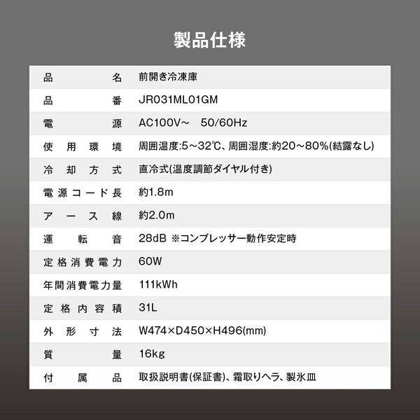 他の画像を見る 送料無料 マクスゼン 31L 1ドア 右開き 冷凍庫 冷蔵モード搭載 JR031ML01GM ガンメタリック 当店特別価格 ¥ 14,480 税込 送料無料 カートに入れる お気に入りに登録する