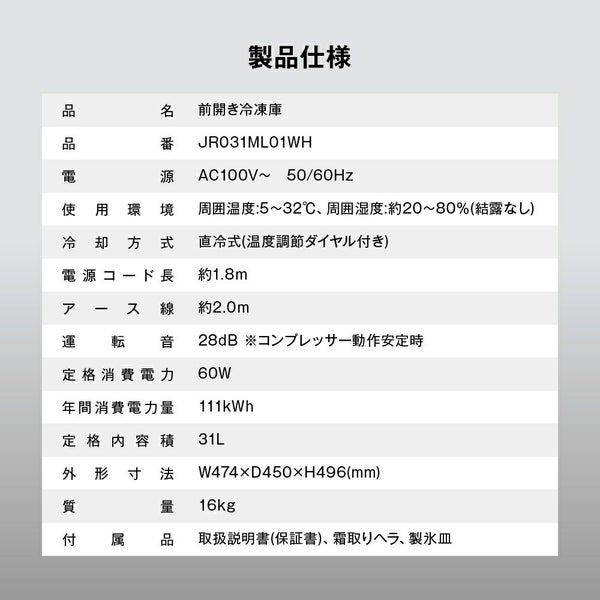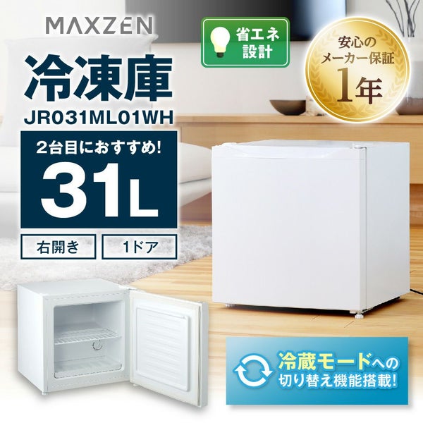 他の画像を見る 送料無料 マクスゼン 31L 1ドア 右開き 冷凍庫 冷蔵モード搭載 JR031ML01WH ホワイト 当店特別価格 ¥ 14,480 税込 送料無料 カートに入れる お気に入りに登録する