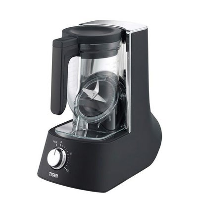 ◎タイガー初の斜め構造でかつてないほどのなめらかさを実現したプレミアムミキサー■リんごも丸ごと粉砕。 斜め型ミキサーだからこそ、食材がカッターに効果的にあたり、高い切削能力を実現。素材の栄養を逃がさず、丸ごと摂取できます。※りんごは、芯と種を取り除いてご使用ください。■巻き込む3つの水流で撹拌力を最大化 上下に巻き込む3つの異なる水流で、食材がカッターに向かって流れます。■下準備時間が従来のミキサーから劇的に短縮 食材を包丁で細かく切る下準備も少なく、どの食材から入れてもいいので、混ぜる順番を考える時間も節約。毎日の食卓で継続して使って頂きやすい設計になっています。■これまでに無いなめらかな舌触りを実現 カッターに当たらず粉砕されないまま残る“切削残り”が少なくなることで、圧倒的になめらかな仕上がりを実現しました。■メーカー従来品との違い 従来のミキサーでは、りんごに対して刃が水平に配置されているため、刃がりんごの皮をむくように回転。それに対しTIGER EDGEでは、食材とカッターが斜めにあたることで横からしっかりと切削出来ます。■1~10の速度調整 粗く刻んだりも、なめらかにも。お好みに合わせて自在に調整。■冷凍フルーツや市販の氷を切削可能 従来のミキサーでは禁止されている事もある冷凍フルーツなどを、解凍する事無くそのまま調理して頂けます。※氷のみでの使用はできません。3cm角未満の氷を使用してください。大きすぎると故障の原因になります。■カップが軽く、スライド着脱でかんたんに トライタン(樹脂)製の軽いカップは、横にスライドして着脱、手や腕の負担が軽くなりました。中央に配置したとっ手も利き手に左右されない設計になっています。■フタ検知、フタロック機構で安全利用 フタが正しくしまっていない状態では起動しない仕組みとなっています。ミキサーの刃が露出したまま稼働することがなく安全にご利用いただけます。■ローフォルムで置きやすく取り出しやすい 高さを抑えたローフォルムやコードリールで、すっきり収納。カップは手前にスライドする設計のため、置き場所を選びません。■かんたんお手入れ カップとフタは食器洗い乾燥機に対応。毎日使っていただきやすいよう、清潔に保ちやすく、お手入れしやすい設計にいたしました。■品番:SLB-A100■色柄:オニキスブラック<KO>■定格電圧:100V■定格周波数:50-60Hz■容量:1L■定格消費電力:410W■サイズ 幅×奥行×高さ(約):17.1×35.2×33.2(cm)■質量 (約):4.3kg■コードの長さ(約):1m■食洗機OK:カップ、フタ(上・下)■定格時間:連続運転(4分間運転、2分間停止のくり返し)