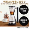 喫茶店の味をご自宅でセットしてスイッチを押すだけ!本格的な味と演出■抽出時間3段階■保温機能30分■お手入れに便利!長さ約29cmの掃除用ブラシ付き■在宅ワークにもおすすめ!■定格電圧:AC100V■定格周波数:50/60Hz■定格消費電力:750W■本体重量:約778g■本体サイズ:約(幅)15×(奥行)14×(高さ)26cm■最大使用水量:約240ml■電源コード長さ:約65cm■材質:ガラス、ステンレス、PP樹脂、ABS樹脂、シリコン■付属品:計量スプーン、掃除用ブラシ