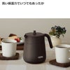 ●お茶がつくれて保温もできる、ストレーナー付きのティーポット。フタがおさえられるので片手でも注げる