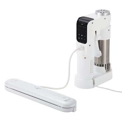 専用シーラー、専用袋で本格的な真空低温調理ができます。専用シーラーは、液体調味料(50ml程度)を入れても脱気シーリングできます。