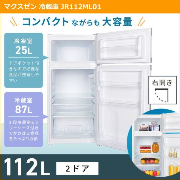 他の画像を見る 送料無料 マクスゼン 121L 冷蔵庫 ファン式 2ドア 右開き 前開き JR121HM01WH ホワイト 当店特別価格 ¥ 33,880 税込 在庫切れ 送料無料 詳細を見る お気に入りに登録する