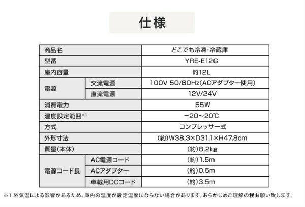他の画像を見る 送料無料・代引き手数料無料 ユアサプライムス ポータブル 冷蔵庫 冷凍庫 12L コンプレッサー式 AC電源 DC電源 2WAY電源対応 YRE-E12G-H 当店特別価格 ¥ 22,980 税込 送料無料・代引き手数料無料 カートに入れる お気に入りに登録する