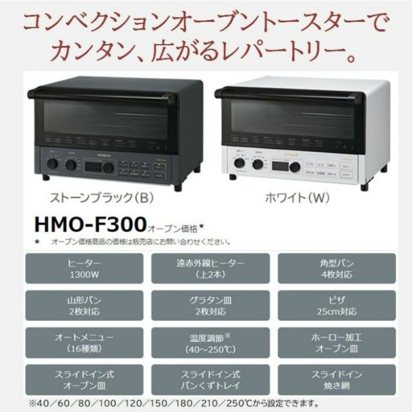 他の画像を見る 送料無料・代引き手数料無料・延長保証申込可 日立 コンベクションオーブントースター 角型パン4枚対応 ノンフライ調理 低温調理 HMO-F300-W ホワイト 当店特別価格 ¥ 14,620 税込 在庫切れ 送料無料・代引き手数料無料・延長保証申込可 詳細を見る お気に入りに登録する