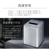 ○素早く洗えて操作も簡単。5種類の洗濯コースと風乾燥機能。・洗濯容量:5.0kg・洗濯コース5種・3つのすすぎ機能・風乾燥コース・槽洗浄+槽乾燥○衣類へのダメージを少なくする「ソフトコース」機能衣服へのダメージを少なくする「ソフトコース」機能を搭載。洗濯時間と脱水時間を短縮するので、節約にも繋がります。○5種類の洗濯コース1.標準コース・・・綿素材の下着など、普段着を洗濯したいときに。2.自分流コース・・・自分のお好みの運転内容を記憶させることができます。次からは「自分流」を選ぶと前回に設定した内容で運転することができます。3.強洗コース・・・がんこな汚れを洗濯したいときに。4.毛布コース・・・毛布などの大物の洗濯ができます。5.ソフトコース・・・布傷みをおさえて洗濯したい時に。○いつでも清潔な洗濯槽洗濯・脱水槽の掃除ができます。槽洗浄のあと槽乾燥で洗濯槽を乾燥し、黒カビの発生を抑えます。○干し時間を短縮「風乾燥」ヒーターを使わず高速回転で大量の風をとり込み、衣類の水分をとばす省エネ方式です。衣類をほぐすために定期的にかくはん運転をします。○シンプル&フルオート誰でもかんたんに操作できるベーシックな操作パネルを搭載。「洗い」「すすぎ」「脱水」の基本動作を手早く簡単に操作できます。○手動で四段階の水位が選べますお好みの水位設定で選択することが可能です。16Lから設定できるので衣類を分けて洗いたいときに便利です。○便利な予約機能今から何時間後に洗濯を終了させたいか、1~24時間の間で洗濯終了時刻の予約ができます。○洗濯容量の目安1人の1日分の洗濯物量は約1.5kgと一般的に言われています。4人家族で毎日まとめて洗濯するのなら、約6kg(15kg×4人)が洗濯量の目安です。○柔軟剤を自動で投入「柔軟剤注入口」に1回分の柔軟剤を入れておけばすすぎの工程で自動的に投入してくれます。○折りたたみ式の蓋蓋が折りたたみ式なので上部の空いたスペースを有効活用できます。○お掃除簡単な糸くずフィルター取り外しのできる「糸くずフィルター」を搭載。ケース状のため簡単にごみ捨てができます。○安心のチャイルドロック機能付き安全のため強制的にふたをロックし、開かないようにすることができます。○大きく使いやすい予約洗剤ケース予約洗濯のとき、「洗剤投入トレイ」を開け、平らに入れてください。液体洗剤は、別の投入口から入れることができます。○残った風呂水を使いって節約市販の風呂水給水ポンプやバケツなどでお風呂の残り湯を洗濯に使えます。※市販の給水ポンプをお買い求めください。(付属しておりません)【仕様】種類:全自動洗濯機定格電圧:100V定格周波数:50/60Hz共用定格入力:360W(50Hz)/410W(60Hz)標準洗濯容量:5.0kg標準脱水容量:5.0kg標準使用水量:115L標準水量:45L外形寸法:幅565×奥行き534×高さ835mm質量:30kg保証期間:1年●本製品は日本国内専用です。日本国外でのご使用は保証の対象外となります。また、アフターサービスもご利用いただけません。