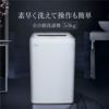 ○素早く洗えて操作も簡単。5種類の洗濯コースと風乾燥機能。・洗濯容量:5.0kg・洗濯コース5種・3つのすすぎ機能・風乾燥コース・槽洗浄+槽乾燥○衣類へのダメージを少なくする「ソフトコース」機能衣服へのダメージを少なくする「ソフトコース」機能を搭載。洗濯時間と脱水時間を短縮するので、節約にも繋がります。○5種類の洗濯コース1.標準コース・・・綿素材の下着など、普段着を洗濯したいときに。2.自分流コース・・・自分のお好みの運転内容を記憶させることができます。次からは「自分流」を選ぶと前回に設定した内容で運転することができます。3.強洗コース・・・がんこな汚れを洗濯したいときに。4.毛布コース・・・毛布などの大物の洗濯ができます。5.ソフトコース・・・布傷みをおさえて洗濯したい時に。○いつでも清潔な洗濯槽洗濯・脱水槽の掃除ができます。槽洗浄のあと槽乾燥で洗濯槽を乾燥し、黒カビの発生を抑えます。○干し時間を短縮「風乾燥」ヒーターを使わず高速回転で大量の風をとり込み、衣類の水分をとばす省エネ方式です。衣類をほぐすために定期的にかくはん運転をします。○シンプル&フルオート誰でもかんたんに操作できるベーシックな操作パネルを搭載。「洗い」「すすぎ」「脱水」の基本動作を手早く簡単に操作できます。○手動で四段階の水位が選べますお好みの水位設定で選択することが可能です。16Lから設定できるので衣類を分けて洗いたいときに便利です。○便利な予約機能今から何時間後に洗濯を終了させたいか、1~24時間の間で洗濯終了時刻の予約ができます。○洗濯容量の目安1人の1日分の洗濯物量は約1.5kgと一般的に言われています。4人家族で毎日まとめて洗濯するのなら、約6kg(15kg×4人)が洗濯量の目安です。○柔軟剤を自動で投入「柔軟剤注入口」に1回分の柔軟剤を入れておけばすすぎの工程で自動的に投入してくれます。○折りたたみ式の蓋蓋が折りたたみ式なので上部の空いたスペースを有効活用できます。○お掃除簡単な糸くずフィルター取り外しのできる「糸くずフィルター」を搭載。ケース状のため簡単にごみ捨てができます。○安心のチャイルドロック機能付き安全のため強制的にふたをロックし、開かないようにすることができます。○大きく使いやすい予約洗剤ケース予約洗濯のとき、「洗剤投入トレイ」を開け、平らに入れてください。液体洗剤は、別の投入口から入れることができます。○残った風呂水を使いって節約市販の風呂水給水ポンプやバケツなどでお風呂の残り湯を洗濯に使えます。※市販の給水ポンプをお買い求めください。(付属しておりません)【仕様】種類:全自動洗濯機定格電圧:100V定格周波数:50/60Hz共用定格入力:360W(50Hz)/410W(60Hz)標準洗濯容量:5.0kg標準脱水容量:5.0kg標準使用水量:115L標準水量:45L外形寸法:幅565×奥行き534×高さ835mm質量:30kg保証期間:1年●本製品は日本国内専用です。日本国外でのご使用は保証の対象外となります。また、アフターサービスもご利用いただけません。