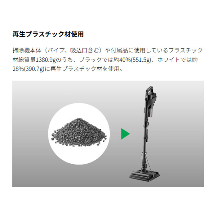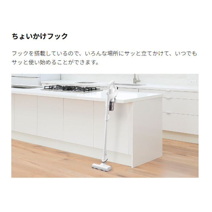 1.2kgの軽量ボディに加え、重心バランスがよく軸がブレにくい本体と、小回りがきく吸込口で、さらに快適にお掃除できます。