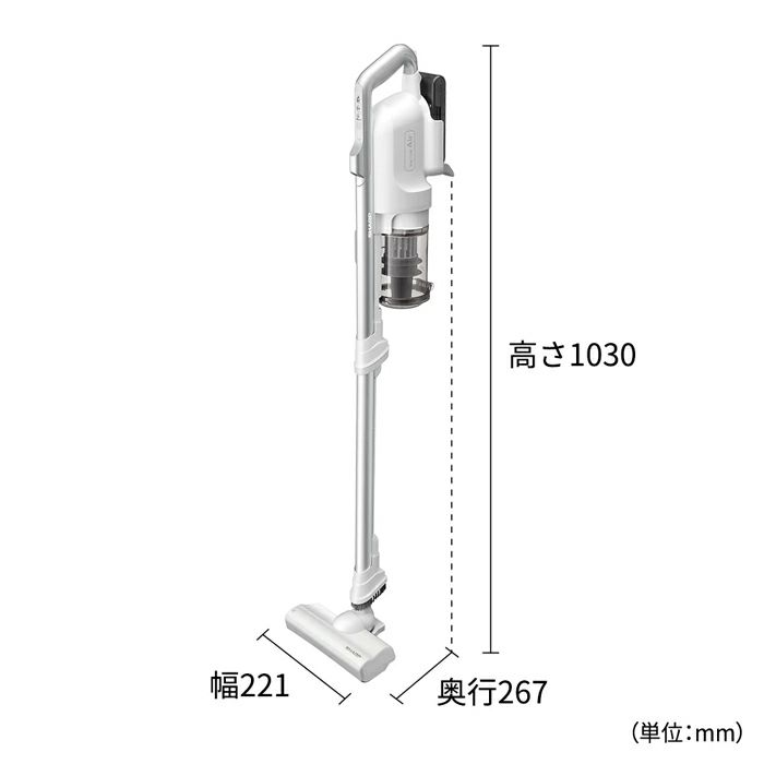 ■やさしい運転音独自の低騒音化技術により、運転音と運転時に不快に感じる耳障りな音(ピーク音)を抑制。周りも時間も気にせず、お掃除することができます。■パワー&スタミナ軽量高出力モーターと効率の良いサイクロン構造により、ラクティブエア史上最強のパワー※4を実現。大容量バッテリーで最長約45分*※5の長時間運転。■便利機能様々な掃除スタイルでごみを照らす「どこでもライト」やかがまずスムーズにお掃除ができる「新スグトル構造」など便利な機能が盛りだくさん。※4メーカー調べ。※5室温20℃、満充電、電池初期、標準の吸込口を使用時に測定した最長運転時間。付属のすき間ノズル等使用時は90分。床面の種類、使用環境、使用状態により異なります。■転音:60~約52dB*■標準質量(本体質量):1.7(1.3)kg*※1■本体寸法(幅×奥行×高さ)・スティック時:221×267×1030mm・ハンディ時:105×197×474mm■最長連続運転時間*:標準モード:約45分※2/約90分※3 / 自動モード:約15分~約35分※2 / 強モード:約15分※2■バッテリー(リチウムイオン電池):25.2V 2500mAh/着脱式バッテリー■充電方式:充電器■充電時間*:約100分※4■消費電力:充電中:約58W/充電完了後:約0.3W■集じん容積:0.3L※5■集じん方式:からみにく~いサイクロン※6/遠心分離サイクロン■モーター:軽量高出力モーター■吸込口:パワーヘッド (自走パワーアシスト※7) / パワフルスリムヘッド / ペタッとヘッド / 端までブラシ / からみにく~いブラシ※8 / から拭きパワーブラシ■排気クリーン:抗菌※9・消臭※10高性能プリーツフィルター(水洗い可能)■ダストカップ:ワンタッチ着脱カップ■使いやすさ・低騒音化構造:ファンネルサイレンサー / ダンピングコントロール・ごみ捨て:そこポイ・水洗い:回転ブラシ・ダストカップ・フィルター・エコ掃除機能:床面検知(自動モード)・便利機能:どこでもライト、新スグトル構造、ちょいかけフック、残時間表示(7セグLED)*JEMA自主基準(HD-10)により測定。※1標準質量は本体、バッテリー、パイプ、吸込口の合計質量です。本体質量はバッテリーを含む本体のみの質量です。※2室温20℃、満充電、電池初期、標準の吸込口を使用時に測定した最長運転時間。床面の種類、使用環境、使用状態により異なります。※3室温20℃、満充電、電池初期、付属のすき間ノズル等使用時に測定した最長運転時間。床面の種類、使用環境、使用状態により異なります。※4測定は室温20℃。充電時聞は周辺温度、使用条件などによって異なります。※5メーカー推奨ごみ捨てラインまでの容積。このラインを超えてごみを吸わせ続けると吸引力が落ちる場合があります。※6メーカー調べ。※7床面の種類、使用環境、使用状態により操作力には差が出ることがあります。※8メーカー調べ。※9●試験機関:(一財)ボーケン品質評価機構 ●試験方法:菌液吸収法 ●試験結果(抗菌効果):抗菌活性値2.0以上(抗菌効果あり) ●抗菌方法:抗菌剤を含浸※10●試験機関:(一財)ボーケン品質評価機構 ●試験方法:繊維評価技術協議会法