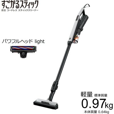 ◎「軽量0.97kg*1*2」■1kg*2 以下でもしっかり吸引。お掃除の手間も軽くなる。 軽量0.97kg*1*2 だから片手で軽々使えて、しかも、しっかり吸引。ふだん使いでも頼りになります。■驚きの軽さを実現したのは日立の軽量技術。 本体・延長パイプ・ヘッドを徹底的に軽量化。しっかり吸引しながら、日立スティッククリーナー史上最軽量を実現しました。※ 2024年8月5日時点。2023年度発売PV-BS1L(同等機種)も同様に0.97kg。■もっとも明るく感じる波長に近い緑色LEDライトで、見えにくいごみも浮かび上がらせます。 お部屋をキレイにするには、ごみを見えやすくすることが必要でした。日立はLEDライトにもっとも明るく感じる波長に近い「緑色」を採用。見えにくかったごみも浮かび上がらせて、キレイにできます。※ メーカー調べ。ごみの種類や量、床、周囲環境などの条件によって効果は異なります。■髪の毛などが、からまりにくい。*3 ブラシの先端をループ形状にすることで髪の毛などがからまりにくくなり、スッキリ吸引。お手入れもラクラク。※ メーカー調べ。ごみの種類や量、床、周囲環境、運転モードなどの条件によってからまる場合があります。■壁ぎわのごみもスッキリ吸い込みます。 床面との気密性を確保しつつ、ブラシの回転力によって、軽い操作でごみを集じん。しかも、ヘッドの前側に近づけた回転ブラシで、壁ぎわのごみもスッキリ。■吊るしておけるからサッとはじめられます。 ストラップ付きだからとても便利。フックを使えば好きな場所にかけられます。充電もラクラク。■お掃除中はもちろん、あとのお手入れまで使いやすさにこだわっています。 さまざまなツールからお手入れまで、使う人にうれしいこだわりが詰まった一台です。回転ブラシは髪の毛などがからまりにくく、水洗いができます。*1 一般社団法人 日本電機工業会自主基準(HD-10)により測定。*2 本体・延長パイプ・ヘッド・電池の合計質量。*3 【試験方法】人毛(長さ約30cm)0.25gを3畳のフローリングにランダムにまき、強運転で吸引する。これを10サイクル行う。【試験結果】回転部のブラシへのからみつく毛量(からみ質量比)が1サイクルにつき5%以下。■本体寸法 長さ×幅×高さ スティック時:206mm×230mm×998mm ハンディ時:385mm×69mm×149mm■標準質量(本体質量):0.97kg(0.64kg)*1 ※標準質量は本体・延長パイプ・ヘッド・電池の合計質量です。(本体質量)は電池を含みます。■集じん容積:0.13L■電池(定格電圧):リチウムイオン電池(内蔵)(14.4V)■連続使用時間 強:約8分*1*2 自動:約8分~30分*1*2 標準:約30分(約35分※1)*1*2 ※1 パワフルヘッド light非使用時■充電時間:約2時間*1*3■ヘッド パワフルヘッド light ヘッド幅:約23cm ブラシ水洗い対応 ごみくっきりライト(5灯)■ヘッド機能 自走機能 クルッとヘッド ペタリンコ構造 からまん機構 回転ブラシ ワンタッチ着脱 水洗い対応 モーター駆動方式 からまんブラシ アングル形状■使いやすさ 簡単ごみ捨て からまんプレス構造■付属品 ● ハンディブラシ ● すき間用吸口 ● 延長パイプ ● ACアダプター ● お手入れブラシ*1 一般社団法人 日本電機工業会自主基準(HD-10)により測定。*2 測定は満充電、電池初期、室温20℃。使用時間は周囲温度などの条件で異なります。*3 測定は室温20℃。充電時間は使用方法、周囲温度、電池残量などの条件で異なります。※一般的にコードレスタイプのクリーナーは、コード付きタイプのクリーナーに比べて吸い込む力に差があります。ただし、集じん性能を高めるためにモーター駆動の回転ブラシを採用しています。※電池は消耗品です。正しく充電しても使用時間が著しく短くなったときは、電池の寿命です。電池の交換は、お買い上げの販売店へご相談ください。(部品代のほかにPKV-BK50L・PV-BH900SM・BL50L・BL30Lは交換作業費がかかる場合があります。PKV-BK3L・PV-BL3L・BS1Mは交換作業費がかかります。)※この製品には、リチウムイオン電池を使用しています。リチウムイオン電池はリサイクル可能な貴重な資源です。ご使用済み製品の廃棄の方法に関しては、お住まいの自治体にお問い合わせのうえ、リサイクルにご協力をお願いします。自治体により、回収のルールが異なります。