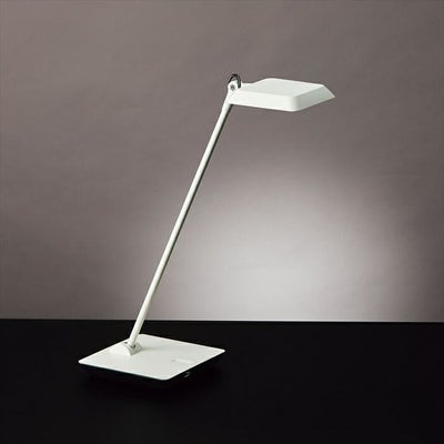■シンプルに、そしてさりげなく、上質の空間を演出。■アダプタープラグが内部に納まるので壁にぴたりと沿う構造。■角型なのでデスクとラインが揃えやすい形状。■スイッチ部分をエンボスにすることで、ベース部分にモノをおいても照明に影響しません。■上まで向くセードの可動範囲で自由な照らし方ができます。■前モデルより演色性を維持したまま明るさをアップしました。【仕様】■取付方法:置き型■光色(LED):白色■色温度(K):4000K■演色性(Ra):Ra90■LEDタイプ:LED一体型■従来光源相当:白熱40W相当■調光:ソフトスタート調光■光源仕様:LED 5.7W■寸法:セード幅112.5×112.5mm・ベース159×159mm・全高474mm■重量:1.2kg■材質仕上:鋼/樹脂■点灯パターン:ソフトスタート機能(100~30%無段階調光)■電圧:100V専用■電源:ACアダプター■定格光束(LED):426lm■消費電力(LED):5.7W■固有エネルギー消費効率(LED):74.9lm/W■LEDモジュール寿命:40000■特徴1:白熱灯40W相当■特徴2:中心直下照度:1296Lx■特徴3:光源部:色温度固定型(4000K白色) Ra90■特徴4:ソフトスタート機能(100~30%無段階調光)■特徴5:ラストメモリー機能■特徴6:ダブルクリック100%■特徴7:卓上型(ベース型)
