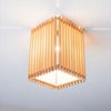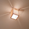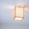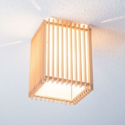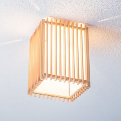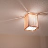 組子とワーロンを組み合わせた、柔らかな光と優しく照らし出される木目が魅力的なペンダント。四隅から漏れる光もアクセントです。 直付方式で、高さを抑えた、コンパクトなデザイン。■規格:E26 60W 白熱電球付■寸法:□170 高225■仕様:直付(引掛シーリング)■材質:日本杉/ワーロン(雲竜)/合板(天板)■生産国:日本