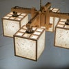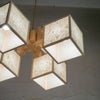 キューブ型のシェードがついた、斬新であたたかみのあるシャンデリア。