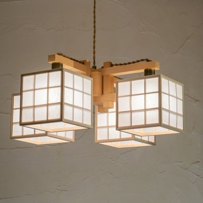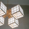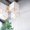 キューブ型のシェードがついた、斬新であたたかみのあるシャンデリア。