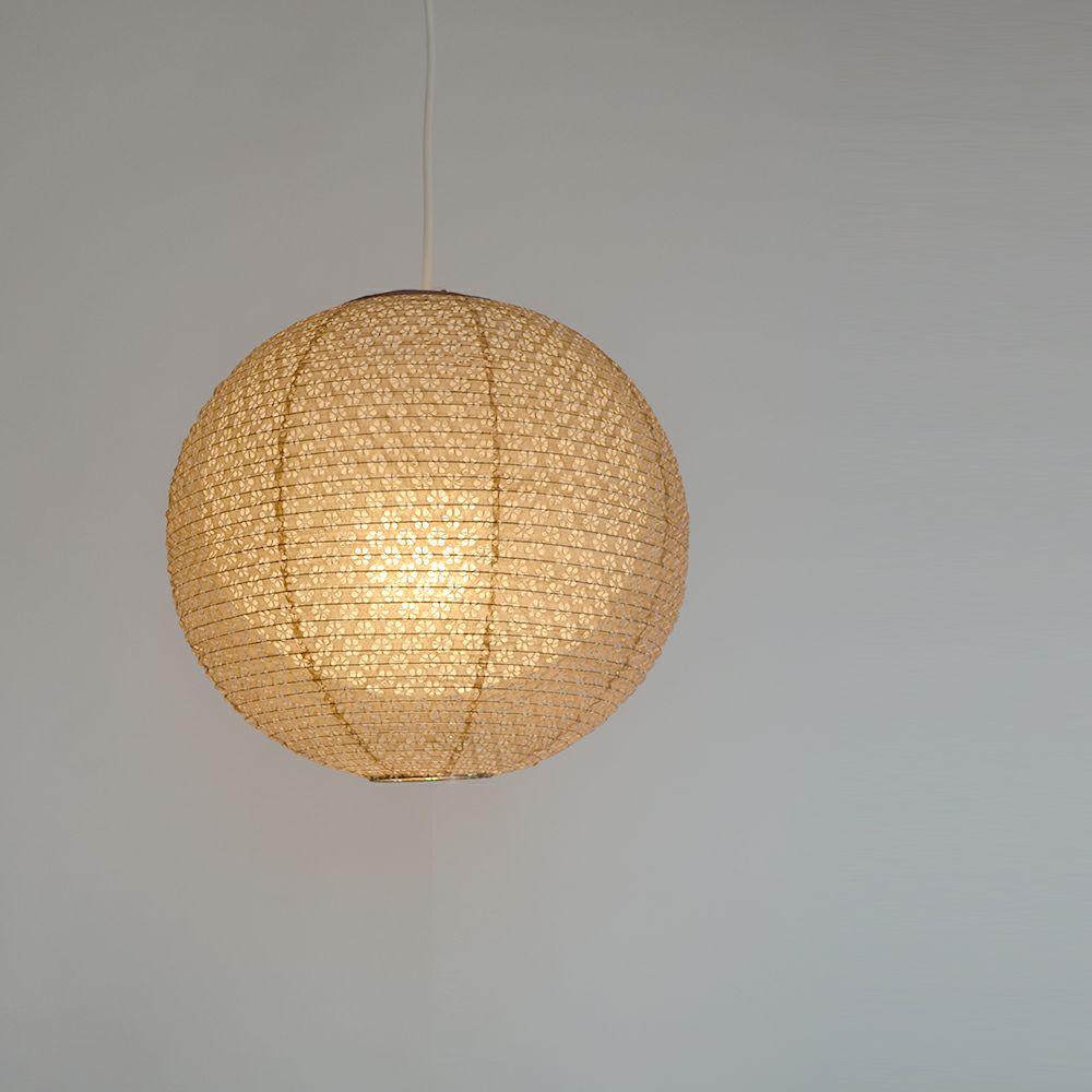 ■サイズは、幅35cmの1灯タイプです。■内側の白色の提灯が透けてとても綺麗です。■少し狭い空間におすすめのサイズです。■LED電球使用可能。■Φ350×H320■対応電球:E26-60Wまで×1 E12-5Wまで (常夜灯)■スイッチ:無(壁スイッチ専用)■コード長:約50cm■目安畳数:約4.5畳■商品に電球は付属されておりません。※天然素材を使用しているため、写真とは色・サイズ・形等が多少異なる場合があります。