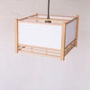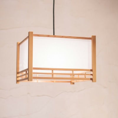 太く直線的な組子の、ちょっと懐かしい和風のデザイン。 ワーロンと色のバリエーションが増えました。■規格:E26 100W 白熱電球付■寸法:□320 高225 コード長600 [全長825]■仕様:黒丸打ちコード(引掛シーリング)フレンジカバー付(黒)■材質:日本杉/ワーロン(A:雲竜)/金属BSメッキ(ソケットカバー)■生産国:日本
