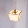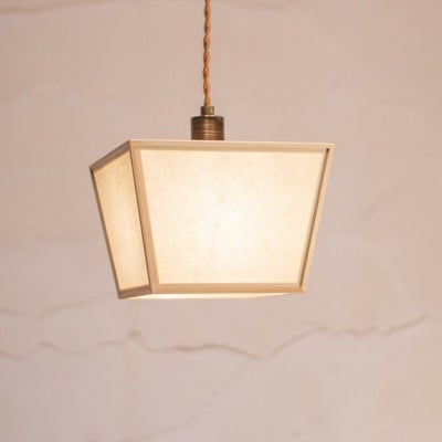 ■規格:E17 60W 白熱電球付■寸法:□180 高175 コード長600 [全長775]■仕様:金茶撚線コード(引掛シーリング) フレンジカバー付(白)■材質:檜/ワーロン(A:ホワイトフォール/B:生なり)/金属BSメッキ(ソケットカバー)/鉄■生産国:日本