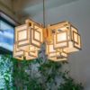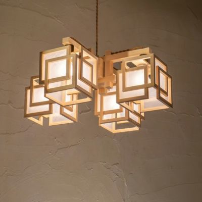 ■規格:E17 40W×4 白熱電球付■寸法:□520 高225 1.65kg コード長600 [全長820]■仕様:金茶撚線コード吊(引掛シーリング) フレンジカバー付(白)■材質:檜/ワーロン(不織布)/金属BSメッキ(ソケットカバー) ■生産国:日本