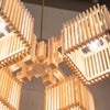 ■規格:E17 60W×4 白熱電球付■寸法:□515 高215 1.75kg コード長600 [全長810]■仕様:金茶撚線コード吊(引掛シーリング) フレンジカバー付(白)■材質:檜/金属BSメッキ(ソケットカバー) ■生産国:日本