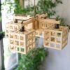 ■規格:E17 60W×4 白熱電球付■寸法:□515 高220 1.65kg コード長600 [全長815]■仕様:金茶撚線コード吊(引掛シーリング) フレンジカバー付(白)■材質:檜/金属BSメッキ(ソケットカバー)■生産国:日本