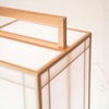伝統的な火袋を有した行灯らしいデザイン。 外貼りのワーロンを通して、内側の組子のデザインが幻想的に浮かび上がります。