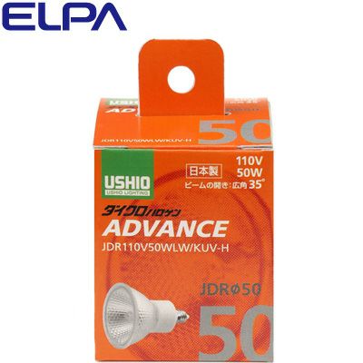 ■ダイクロハロゲンJDRφ50アドバンス■省電力タイプ■最大光度800cd■約25%の省電力、約1.7倍の高照度を実現。高い発光効率と高品質な光を実現したハロゲン電球です。UVカット石英管の採用により、さらに約50%の紫外線をカットしました。