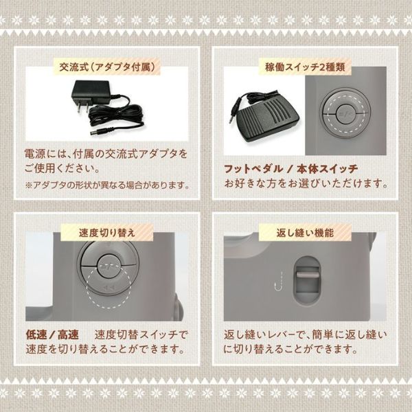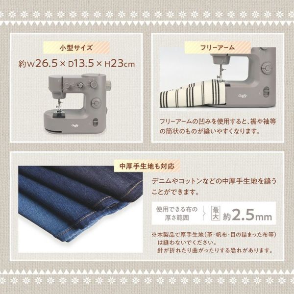 他の画像を見る 送料無料・代引き手数料無料 マクロス 台座付き小型ホームミシン クラッフィー MEH-164 グレージュ 小型ミシン 当店特別価格 ¥ 12,980 税込 送料無料・代引き手数料無料 カートに入れる お気に入りに登録する