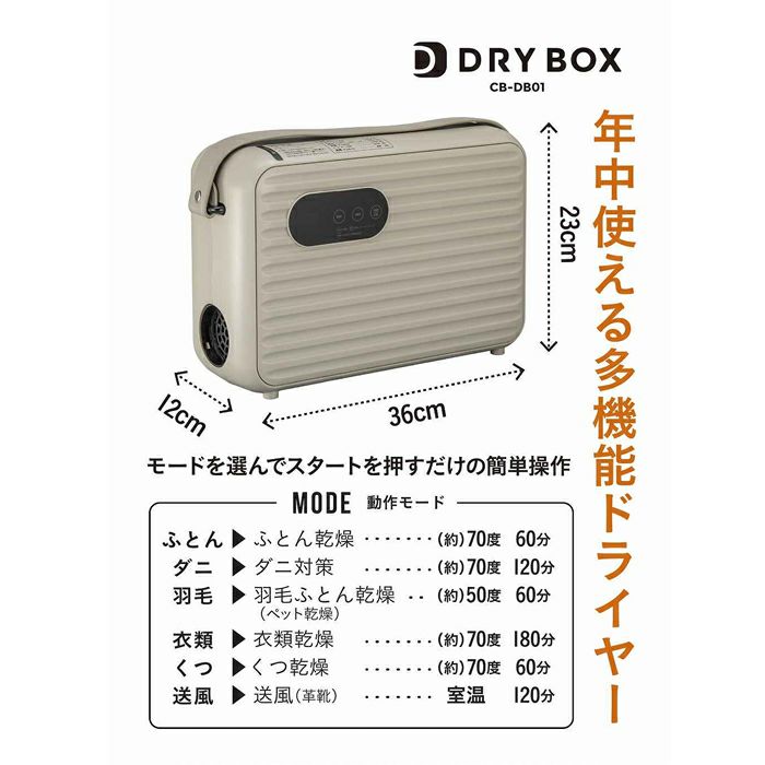 他の画像を見る 送料無料・延長保証申込可 シービージャパン 衣類ふとんドライヤー DRYBOX ふとん乾燥機 衣類乾燥 くつ乾燥 CB JAPAN CB-DB01 当店特別価格 ¥ 10,480 税込 在庫切れ 送料無料・延長保証申込可 詳細を見る お気に入りに登録する