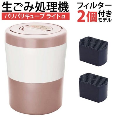 ■生ごみ処理機 パリパリキューブ ライト アルファ PCL-33の「脱臭フィルター2個付属」モデル■自動停止(節電モード)機能、スタート予約(3時間後スタート)機能搭載モデル■処理物の種類や量によって乾燥終了を自動で検知し運転を終了。■無駄な電力を使わず運転が終了し、電気代やランニングコストもお得に!■脱臭フィルターの寿命もアップ(交換目安:4~9ヶ月)。■さらに3時間後スタート予約運転機能モード付きで安価な深夜電力が利用しやすい。■生ごみの悩みは「乾燥」させるだけ! 生ごみ処理の悩みを簡単にすべて解決できます。・悩みの原因である生ごみの水分と雑菌を乾燥させるだけで、におい、悪臭、虫・コバエ、汁だれなどを防ぎ重さも約1/5に減量!ごみ出しも楽になり、回数も減らせる。・処理物は有機質肥料としてもご利用いただけます。・生ごみを乾燥させることで約1/5まで減量し、汁だれも防ぐため、重くて汚れが気なるごみ出しがとても楽になります。・生ごみも室内で長期間保管できるから、ごみ袋にたまってからごみ出しができ、回数も減らすことができます。・生ごみを乾燥させると嫌なにおいや腐敗の悪臭、虫・コバエの発生を防ぐことができます。・大きさはA4用紙サイズ程度でコンパクト、卓上で使えるので場所を取りません。・脱臭ユニットに独自の技術を採用し、乾燥中の嫌なにおいは、活性炭を使った脱臭フィルターでしっかり脱臭します。・温風だけで乾燥させるため運転音は約36dBでとても静かです。深夜でも安心して使用できます。・バスケットに骨や貝殻、爪楊枝等が入っていても面倒な分別をしなくても処理が可能です。・汚れが気になるバスケットと処理容器は洗剤で浸け置き洗いができ簡単なお手入れで常に清潔に保てます。■サイズ:(約) 直径215mm × 高さ283mm■重量:約2.1kg■電源:100V(50/60Hz) ■消費電力:150W■電源コード:1.6m■材質:本体:ABS、PC、SI等、 バスケット:PP■処理方式:温風乾燥式■処理量※1・節電モード:約200g(約0.6L)~約400g/回(約1.2L)、・通常モード:最大約700g/回(約2.0L)■処理時間※1・節電モード:約4時間20分~約5時間40分、・通常モード:約9時間 ※最大処理時間は約9時間です。■電気代※1※2・節電モード:約13円~約17円、・通常モード:約27円■運転音※3:約36dB■投入できる生ごみ:ご飯・めん類、野菜・果物くず、茶がら、肉類・魚類、その他一般的に人が食べられる調理物(スプーンや爪楊枝、お茶パックなどを誤って投入しても故障の心配はありません)(発火性の高いものは投入しないでください)■付属品:脱臭フィルター(PCL-33-AC33) 2個(交換目安:4~9ヶ月)、バスケット用水切りネット15枚/袋、専用マット1枚■保証期間:1年※1:標準試験生ごみ(自主基準)を処理した場合。※2:電力料金目安単価27円/kWh(税込)で計算。※3:(試験機関)香川県産業技術センター