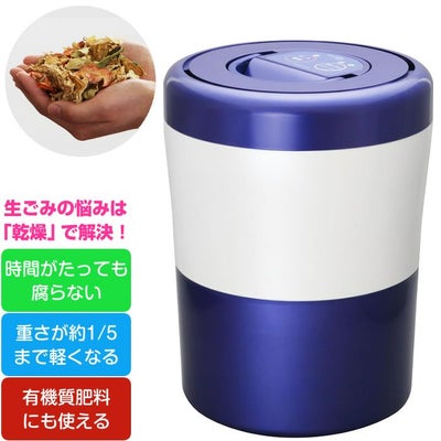 《新機能》 自動停止(通常モード、少なめモード)機能、スタート予約(3時間後スタート)機能搭載モデル◎処理物の種類や量によって乾燥終了を自動で検知し運転を終了。◎無駄な電力を使わず運転が終了し、電気代やランニングコストもお得に!◎脱臭フィルターの寿命もアップ(交換目安:4~9ヶ月)。◎さらに3時間後スタート予約運転機能モード付きで安価な深夜電力が利用しやすい。◎生ごみの悩みは「乾燥」させるだけ! 生ごみ処理の悩みを簡単にすべて解決できます。・悩みの原因である生ごみの水分と雑菌を乾燥させるだけで、におい、悪臭、虫・コバエ、汁だれなどを防ぎ重さも 約1/5に減量!ごみ出しも楽になり、回数も減らせる。・処理物は有機質肥料としてもご利用いただけます。・生ごみを乾燥させることで約1/5まで減量し、汁だれも防ぐため、重くて汚れが気なるごみ出しがとても楽になります。・生ごみも室内で長期間保管できるから、ごみ袋にたまってからごみ出しができ、回数も減らすことができます。・生ごみを乾燥させると嫌なにおいや腐敗の悪臭、虫・コバエの発生を防ぐことができます。・大きさはA4用紙サイズ程度でコンパクト、卓上で使えるので場所を取りません。・脱臭ユニットに独自の技術を採用し、乾燥中の嫌なにおいは、活性炭を使った脱臭フィルターでしっかり脱臭します。・温風だけで乾燥させるため運転音は約36dBでとても静かです。 深夜でも安心して使用できます。・バスケットに骨や貝殻、爪楊枝等が入っていても面倒な分別をしなくても処理が可能です。・汚れが気になるバスケットと処理容器は洗剤で浸け置き洗いができ簡単なお手入れで常に清潔に保てます。■サイズ/(約) 直径215mm×高さ283mm■重量/ 約2.1kg■電源/ 100V(50/60Hz)■消費電力/ 150W■電源コード/ 1.6m■材質/ 本体:ABS、PC、SI 等 バスケット:PP■処理方式/ 温風乾燥式■処理量※1/ 標準モード:約400g(約1.2L)~最大約700g/回(約2.0L) 少なめモード/約200g(約0.6L)~約400g/回(約1.2L)■処理時間※1/ 標準モード:約7時間10分~約8時間40分 ※最大処理時間は約9時間です。 少なめモード:約3時間50分~約5時間10分、■電気代※1※2/ 標準モード:約22円~約26円、 少なめモード:約12円~約15円■運転音※3/ 約36dB■投入できる生ごみ/ ご飯・めん類、野菜・果物くず、茶がら、肉類・魚類、その他一般的に人が食べられる調理物 (スプーンや爪楊枝、お茶パックなどを誤って投入しても故障の心配はありません) (発火性の高いものは投入しないでください)■付属品/ 脱臭フィルター(PCL-35-AC33) 1個(交換目安:4~9ヶ月) バスケット用水切りネット15枚/袋 専用マット1枚■保証期間/ 1年 中国製※1:標準試験生ごみ(自主基準)を処理した場合。※2:電力料金目安単価27円/kWh(税込)で計算。※3:(試験機関)香川県産業技術センター