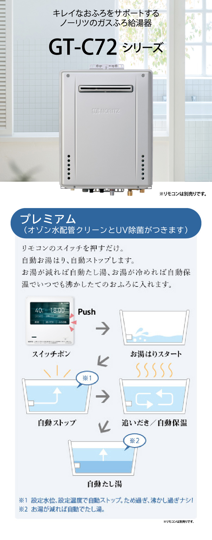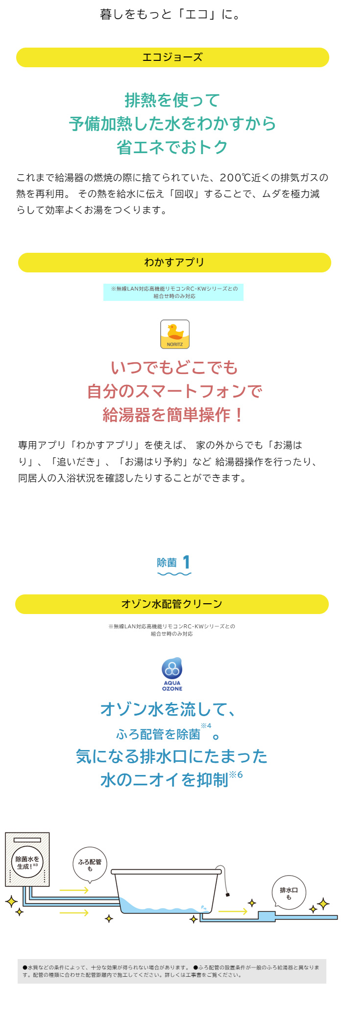 ■排熱を利用したエコジョーズ仕様■追い焚き・自動湯張り対応■W除菌プレミアムフルオート仕様■UV除菌機能■オゾン水配管クリーン機能■おふろのみまもり機能■プロパンガス仕様(LPG仕様)■出湯能力:24号■給水/給湯配管:20A■屋外壁掛形■リモコン別売(RC-Kシリーズのみ対応)■幅×高さ×奥行:600mm×469mm×240mm■重量:27kg
