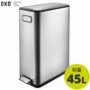 ■正面の持ち手とゴミ箱の下に内蔵されたキャスターで簡単に移動できます。■両開きのフタは、片開きに比べて開く時の高さを抑えることができるので、キッチンカウンターの下など狭いスペースにも置きやすい。■幅のある1枚板をペダルに採用しているので、軽い踏込みで操作ができます。■容量:45L■本体サイズ:27.5x53.2x66.1cm■化粧箱サイズ:32x57x69.5cm■重量:7.8kg