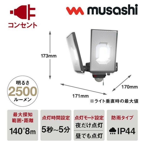 他の画像を見る 送料無料・代引き手数料無料 ムサシ 12.5W×2灯 スライド型 LED センサーライト 屋外向け LED-AC2050 当店特別価格 ¥ 8,478 税込 送料無料・代引き手数料無料 カートに入れる お気に入りに登録する