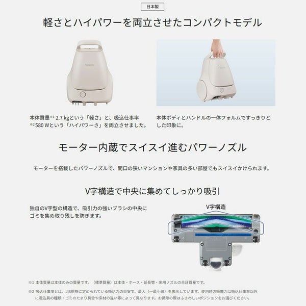 他の画像を見る 送料無料・代引き手数料無料 パナソニック 紙パック式 キャニスター掃除機 MC-PJ25G-C ベージュ 当店特別価格 ¥ 30,480 税込 送料無料・代引き手数料無料 カートに入れる お気に入りに登録する