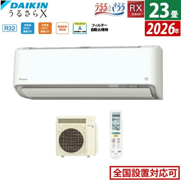 他の画像を見る 設置申込可!送料無料・アフター対応 エアコン 23畳用 ダイキン 7.1kW 200V RXシリーズ うるるとさらら うるさらX 2026年モデル S716ATRV-C-SET ベージュ 室外電源モデル 当店特別価格 ¥ 303,600 税込 設置申込可!送料無料・アフター対応 詳細を見る お気に入りに登録する