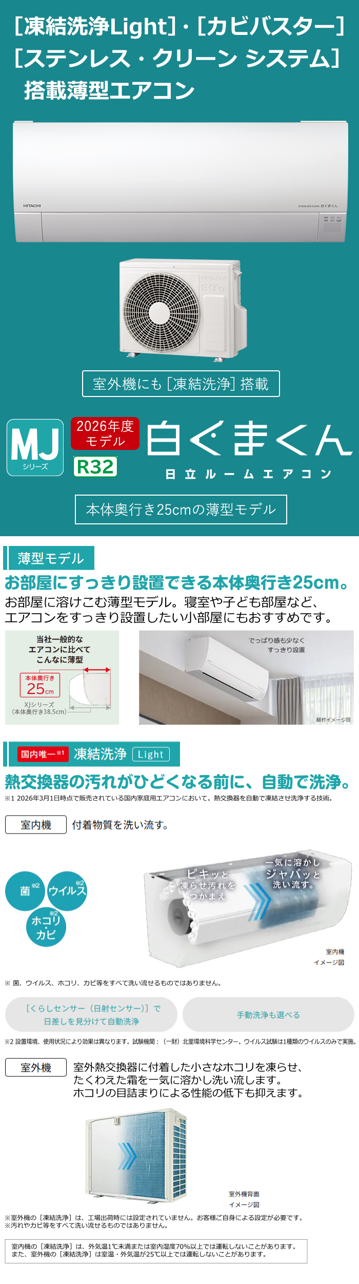 エアコン 18畳用 日立 5.6kW 200V 白くまくん MJシリーズ 2026年モデル RAS-MJ5626D-W-SET スターホワイト