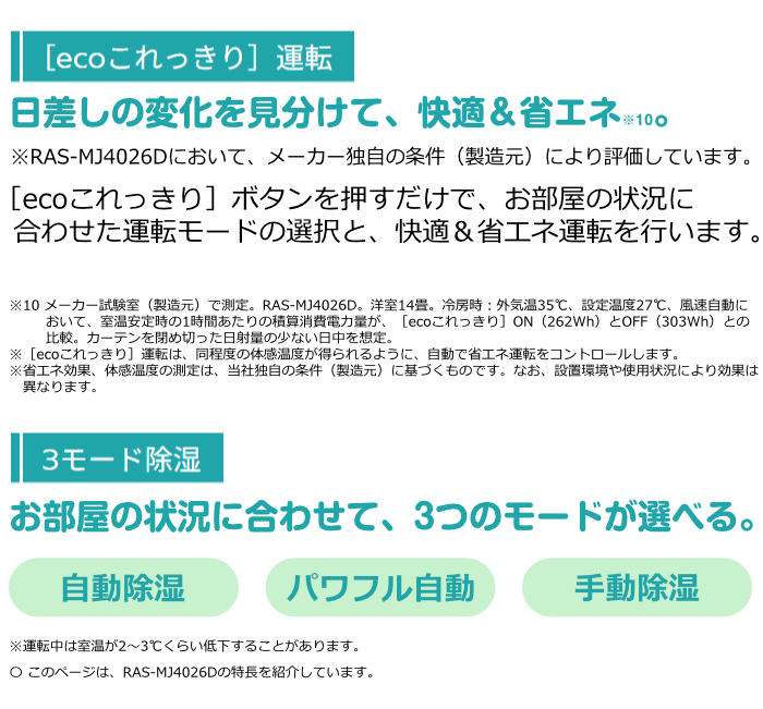 ※RAS-MJ4026Dにおいて、日立独自の条件(製造元)により評価しています。