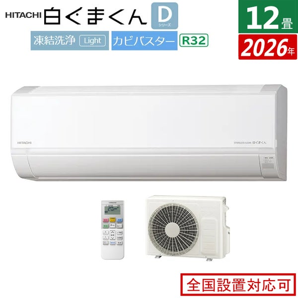 他の画像を見る 延長保証・設置申込可!送料無料・アフター対応 エアコン 12畳用 日立 3.6kW 白くまくん Gシリーズ 2026年モデル RAS-GR3626S-W-SET スターホワイト RAS-GR3626S-W + RAC-GR3626S 当店特別価格 ¥ 189,800 税込 延長保証・設置申込可!送料無料・アフター対応 詳細を見る お気に入りに登録する
