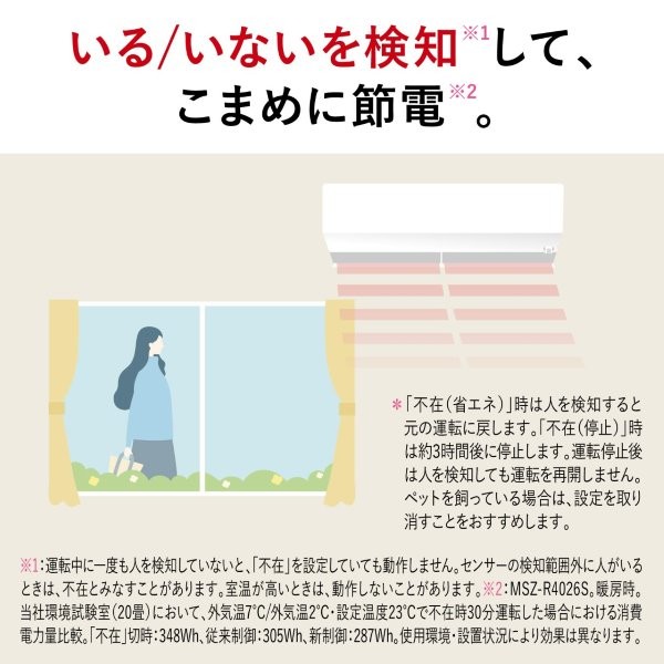 ■2026年モデル■室内機+室外機のセット■コンパクト設計コンパクトなエアコンだから、大きな窓の上など限られたスペースにもぴったり設置できる。■快適はエアコンのセンサーにおまかせ・ムーブアイ赤外線センサーが、床や壁などの温度から体感温度を測り、冷やしすぎやあたためす・2か所同時空調センサーが人を見つめて、人のいる場所を中心に気流をお届け。2つの気流で離れたところにいる2人も快適に。■自動でうれしい省エネ・節電・ハイブリッド運転体感温度にあわせて2つの運転を自動で切り替え、エアコンと扇風機/サーキュレーターのいいとこどりで省エネ。・消し忘れ防止つい消し忘れたときも、不在に気付いて自動でオフ。■エアコンでお部屋の空気をキレイに・ヘルスエアー機能ヘルスエアーユニットを通る空気中の有害物質を、高電圧で抑制し、空気をキレイに。■自動でお掃除、さらに自分でもお手入れかんたん・はずせるフィルターおそうじメカおそうじメカが自動で汚れをかきとり、エアフィルターを清潔に保つ。・よごれんボディ空気の通り道に汚れに強い特殊仕様を採用しているから、汚れにくくてお掃除らくらく。・おまかせボディ運転開始から停止後まで、エアコン内部を自動で洗浄して清潔をキープ。・はずせるボディエアコンのフラップを開いて奥までお掃除できる。さらに、おそうじメカも取り外せてお手入れらくらく。■酷暑でも止まらない運転で快適に・STRONG冷房屋外温度が50°C(室外機の吸込み温度)になっても冷房運転が止まらない。・新湿度制御送風を停止して湿度の上昇を抑え、快適をキープ。■厳しい冬も快適にあたためる・最高約60℃温風最高約60°Cの温風吹出しで、足元がぽかぽかに(「ハイパワー」運転時)。■毎日のくらしをみまもり、便利に・高温みまもりエアコン停止中にお部屋が暑くなると自動で冷房運転を開始。高齢の方やお子様のいるお部屋におすすめ。【その他の機能】○センサー・遠くの場所にも気流を届ける ワイド気流/ロング気流・直接人に風をあてず、お肌の乾燥を防ぐ 保湿風よけ・一時的に最大能力で運転を行う ハイパワー○清潔・有害物質を抑制する特殊コーティングを施したフィルター 清潔Vフィルター○冷房・除湿・ファンの回転数を制御しながら除湿する スマート除湿○暖房・霜取り中の室温低下を抑制する 室温キープシステム○便利・睡眠中の冷やしすぎを防いで快適な眠りへ みまもり快眠・睡眠中の冷やしすぎ、あたためすぎを防ぐ 快眠/ねむりモード○MyMU(マイエムユー)アプリ・お出かけ中にも自宅のエアコンを操作できる 遠隔操作・あらかじめ決めた時刻に設定温度になるよう調節 おやすみサポート・設定した温度になるとスマートフォンに通知 高温おしらせ/低温おしらせ■コンセント形状:単相200V 20A エルバー型■畳数のめやす:冷房 17~26畳(29~43m2)■畳数のめやす:暖房 16~20畳(26~32m2)■能力(kW):冷房 6.3(0.6~6.4)■能力(kW):暖房 7.1(0.6~10.1)■消費電力(W):冷房 2,750(105~3,020)■消費電力(W):暖房 2,420(105~3,720)■低温暖房能力:7.3kW外気温2℃時■期間消費電力量:2,336kWh■省エネ基準達成率83%:目標年度 2027年度■室内機寸法:H255×W799×D338(据付後343)mm*( )内の寸法は、据付板を付けたときの寸法です。■室外機寸法:H630×W800(+62)×D285(+60)mm*( )内の寸法は、サービスパネルおよび脚部の突出し寸法です。■通年エネルギー消費効率:5.1■質量 室内/室外(kg):15/36