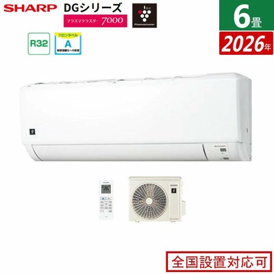 エアコン 6畳用 シャープ 2.2kW DGシリーズ 2026年モデル AY-U22DG-W-SET ホワイト系 プラズマクラスター7000